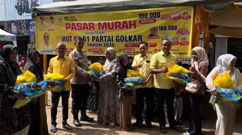 Berita Aceh Pos, Aceh Besar- Dewan Pimpinan Daerah (DPD) II Partai Golkar Aceh Besar menggelar pasar murah di Kantor DPD