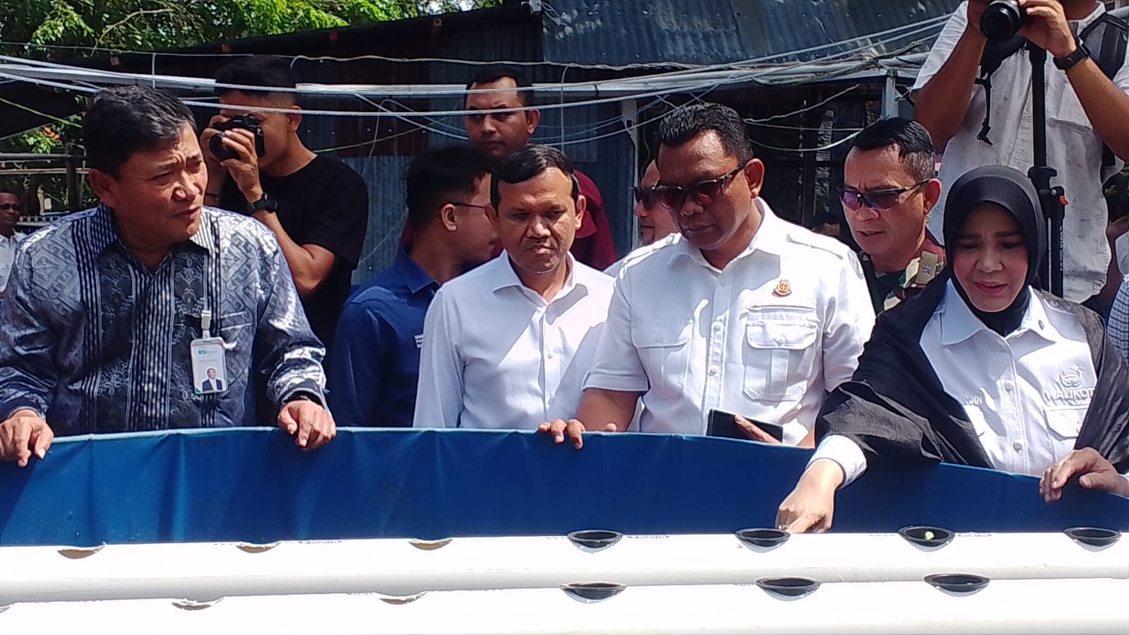 Usai penyerahan bantuan, rombongan juga menyempatkan diri meninjau langsung aktivitas masyarakat yang tergabung dalam Koperasi Merah Putih. Mereka berkeliling melihat kolam ikan dan kebun anggur yang dikelola bersama warga.